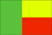 Flag description: two equal horizontal bands of yellow (top) and red with a vertical green band on the hoist side