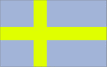Flag description: blue with a yellow cross that extends to the edges of the flag; the vertical part of the cross is shifted to the hoist side in the style of the Dannebrog (Danish flag)